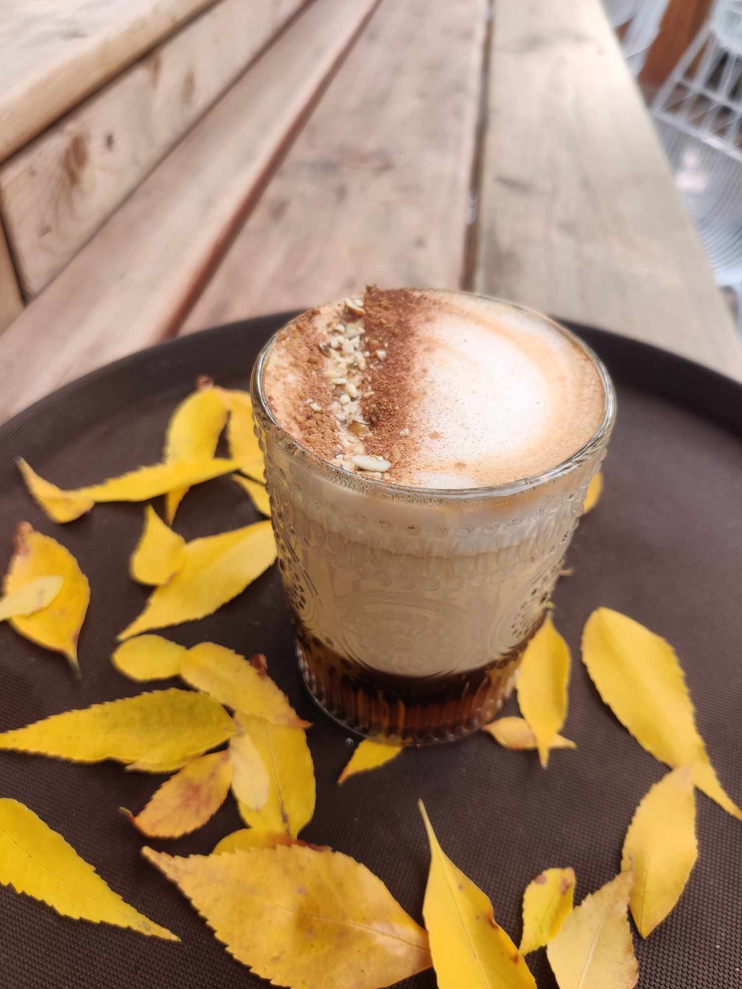 Lait d'avoine chaud, Curcuma, safran, miel. Ne contient pas de café